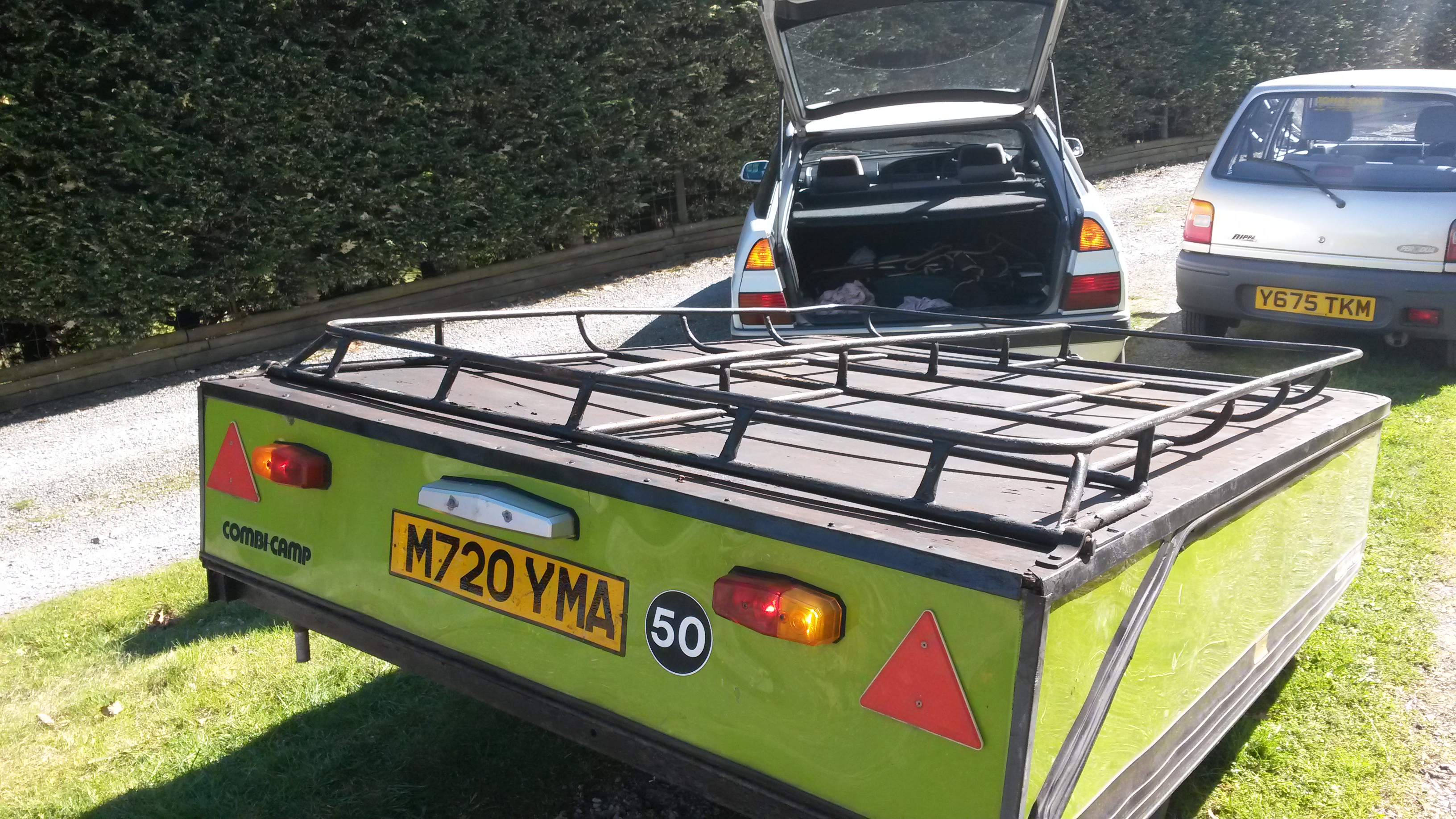 First, the history. Combi-Camps originate from Denmark, and first became available in 1964. The premise is simple enough. Make something light and very quick to erect, so you get something that’s better and more comfortable than a tent, but not as much hassle to tow as a caravan. There have been many models over the years, and you can still buy Combi-Camps new! They’re all a bit fancy these days, but the basic design of ours – which I think is a late 1970s/early 1980s one – continued with very few changes for quite some time.